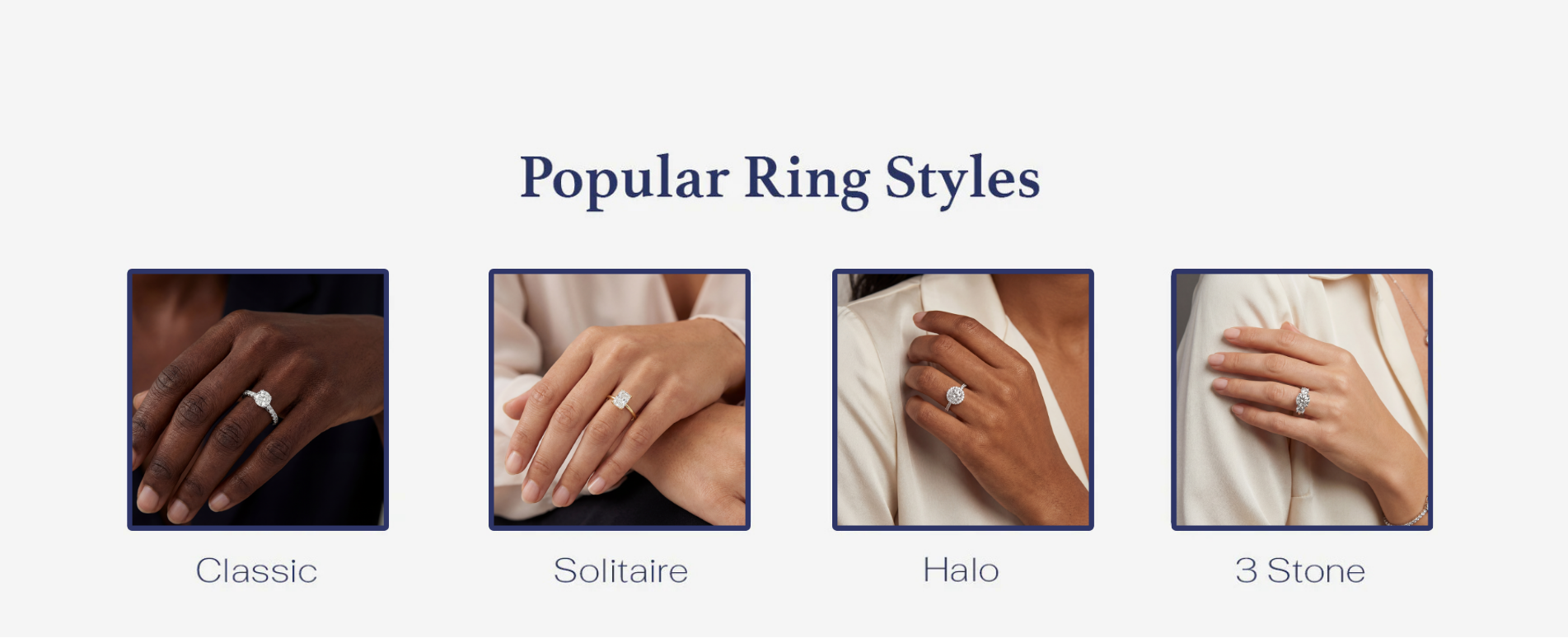 Our engagement ring collection features an incredible variety of styles to suit every taste and personality! We carry classic solitaires, vintage-inspired halo settings, three-stone rings, and contemporary designer pieces. For diamond shapes, we offer all the popular cuts including round brilliant, princess, emerald, oval, pear, marquise, cushion, and radiant cuts. We specialize in both handcrafted designer engagement rings from top designers and custom pieces designed by our in-house artisans. Our team can show you how different diamond shapes look in various settings, and we'll help you find the perfect combination that reflects your partner's style. Whether you're drawn to timeless elegance or want something completely unique, our extensive collection and custom design capabilities ensure we can create the perfect ring for your love story.
