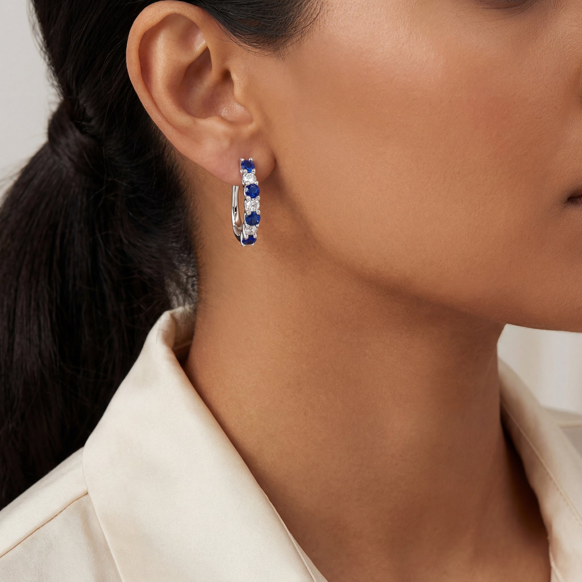 14k White Gold Sapphire and Diamond Hoops.
