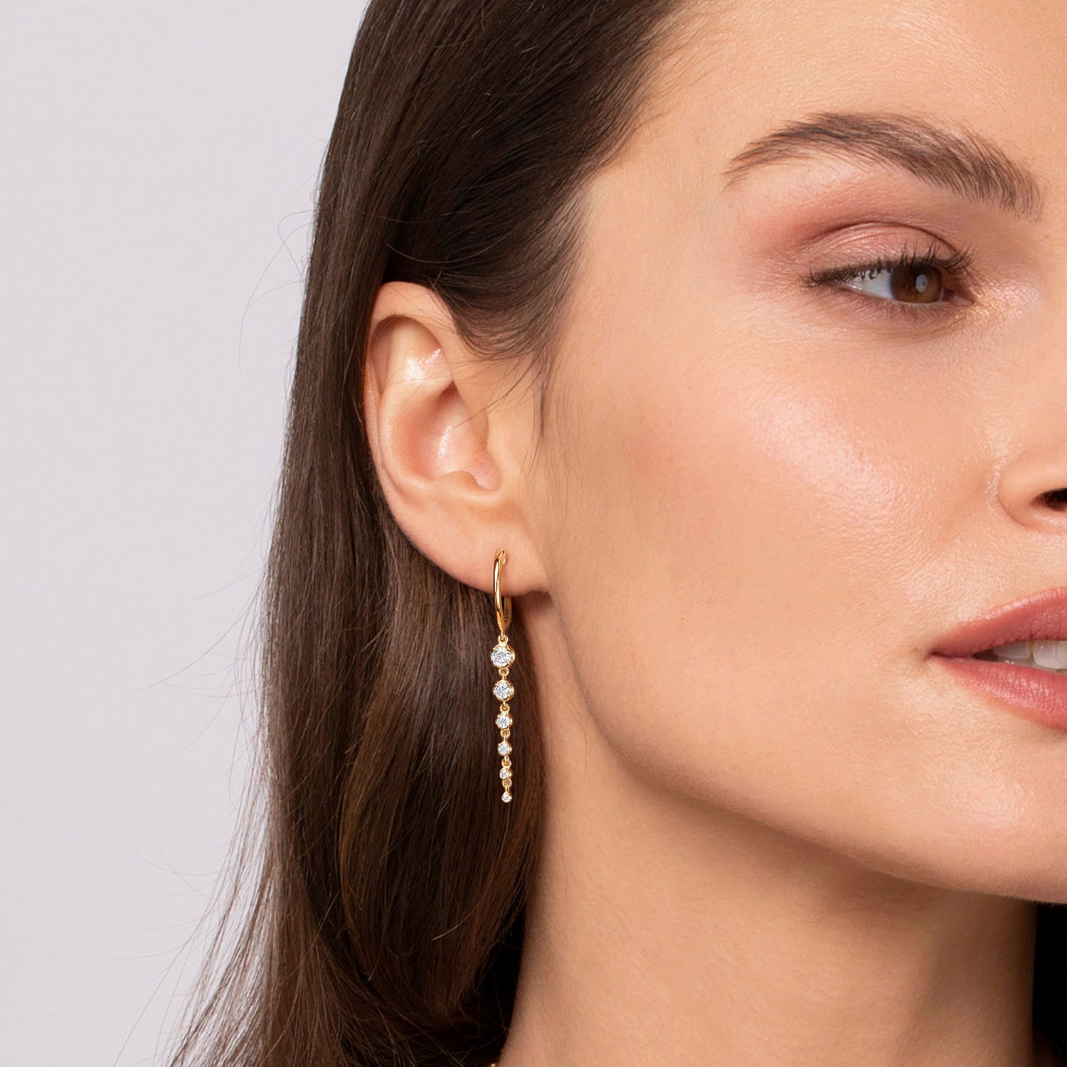 14K Yellow Gold Graduating Diamond Huggie Drop Earrings
