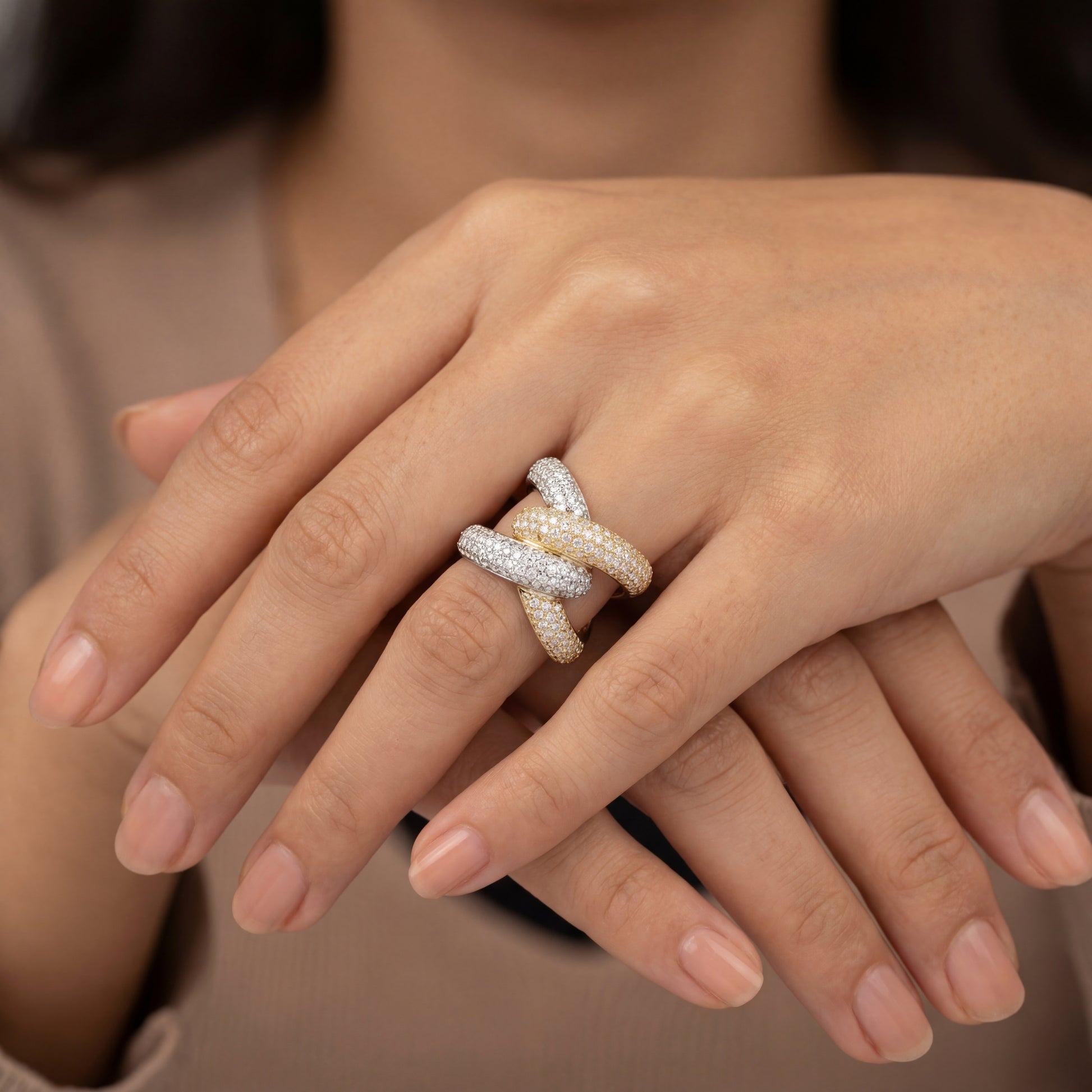 18k Yellow And White Gold Diamond Twist Ring