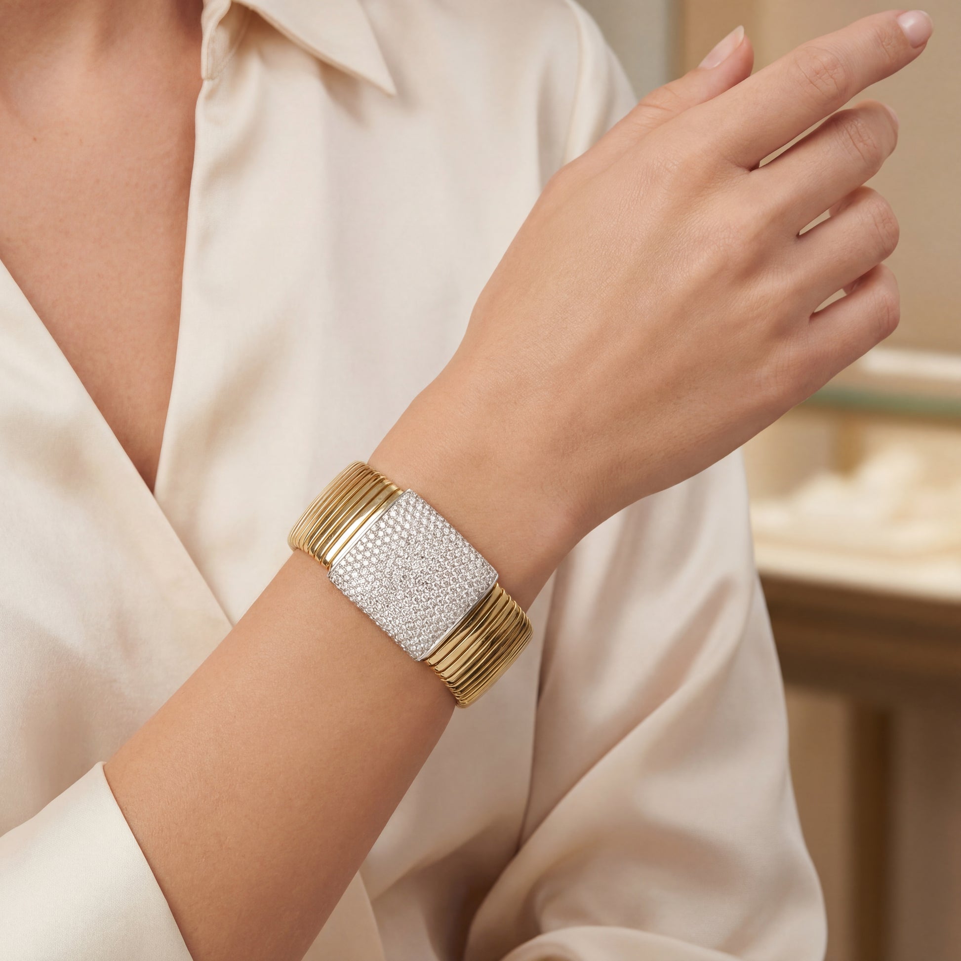 18k Yellow Gold 23mm Cuff With Diamond Cluster Center